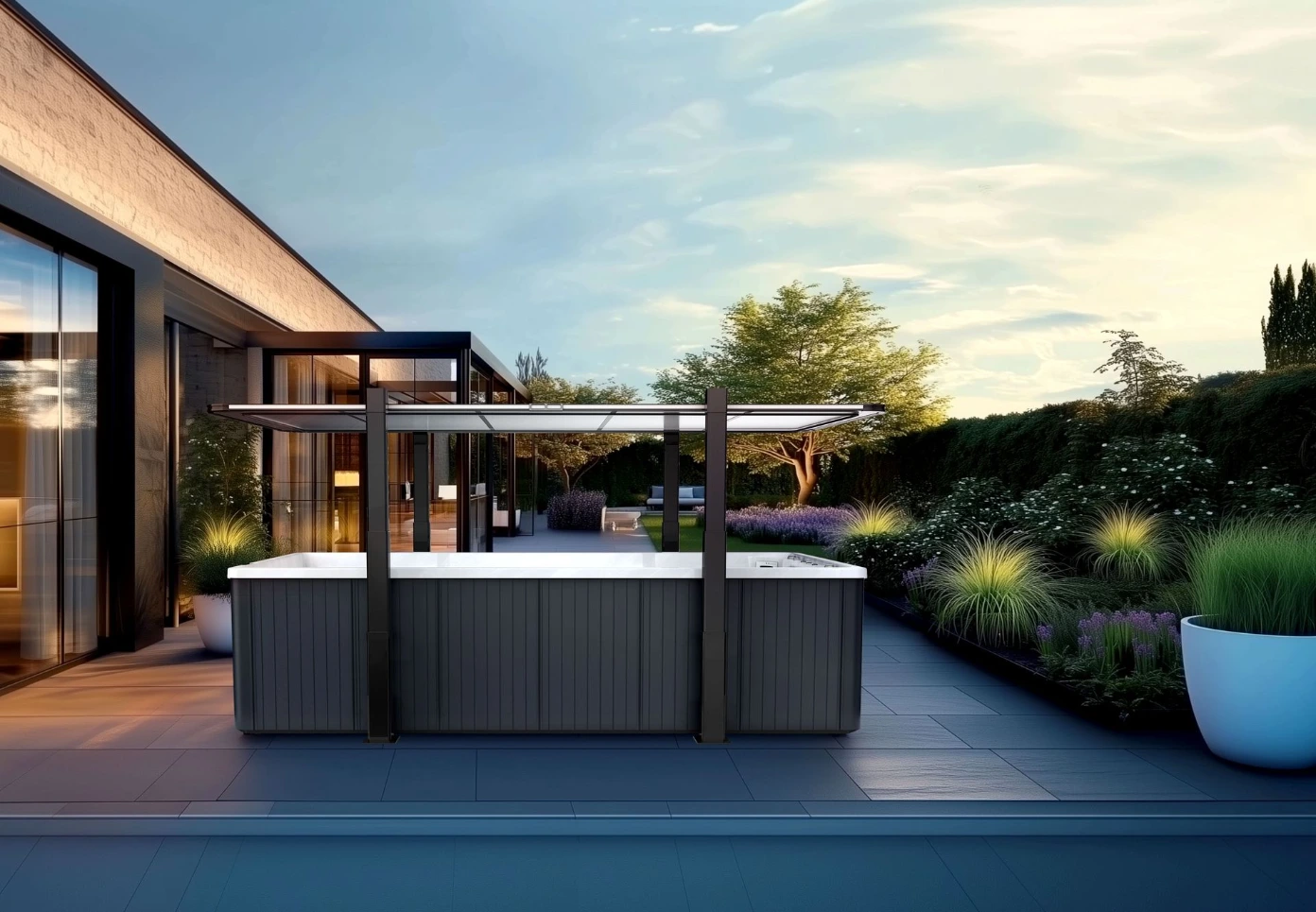 Die besonders elegante Lösung, dabei wird der Swimspa komplett im Boden versenkt!