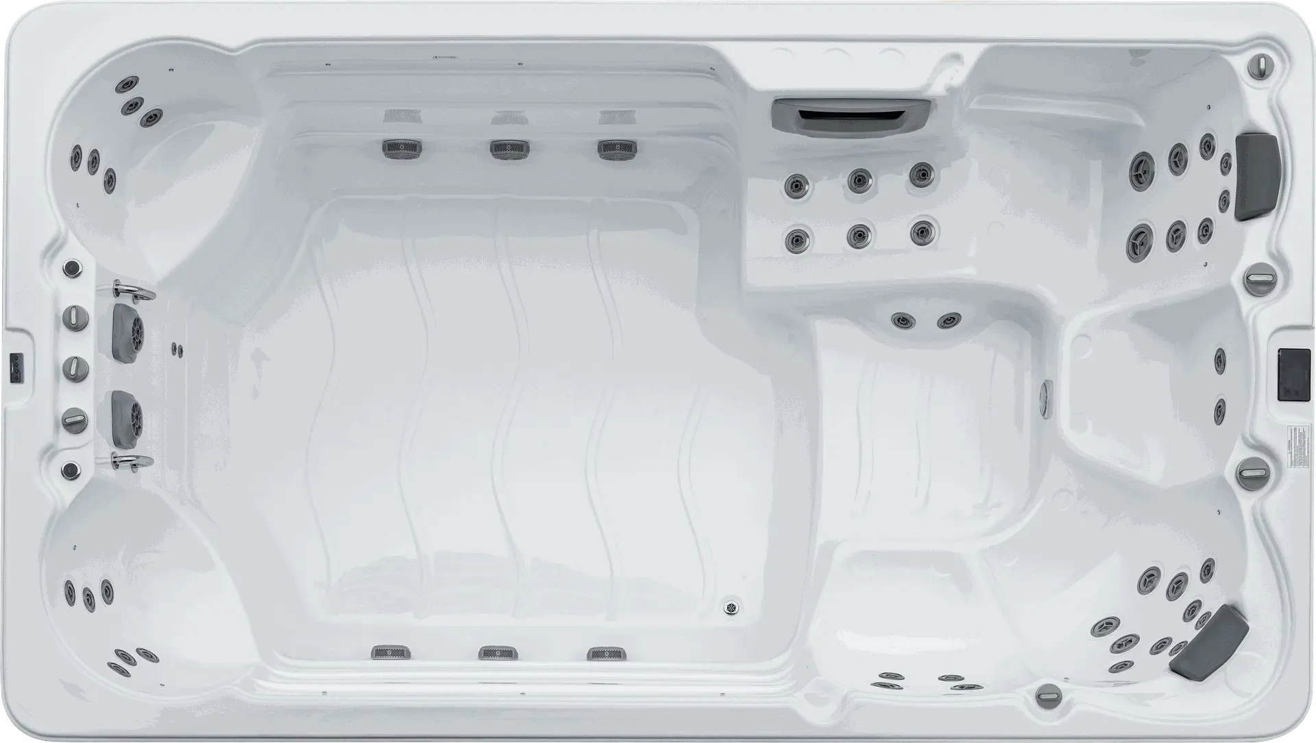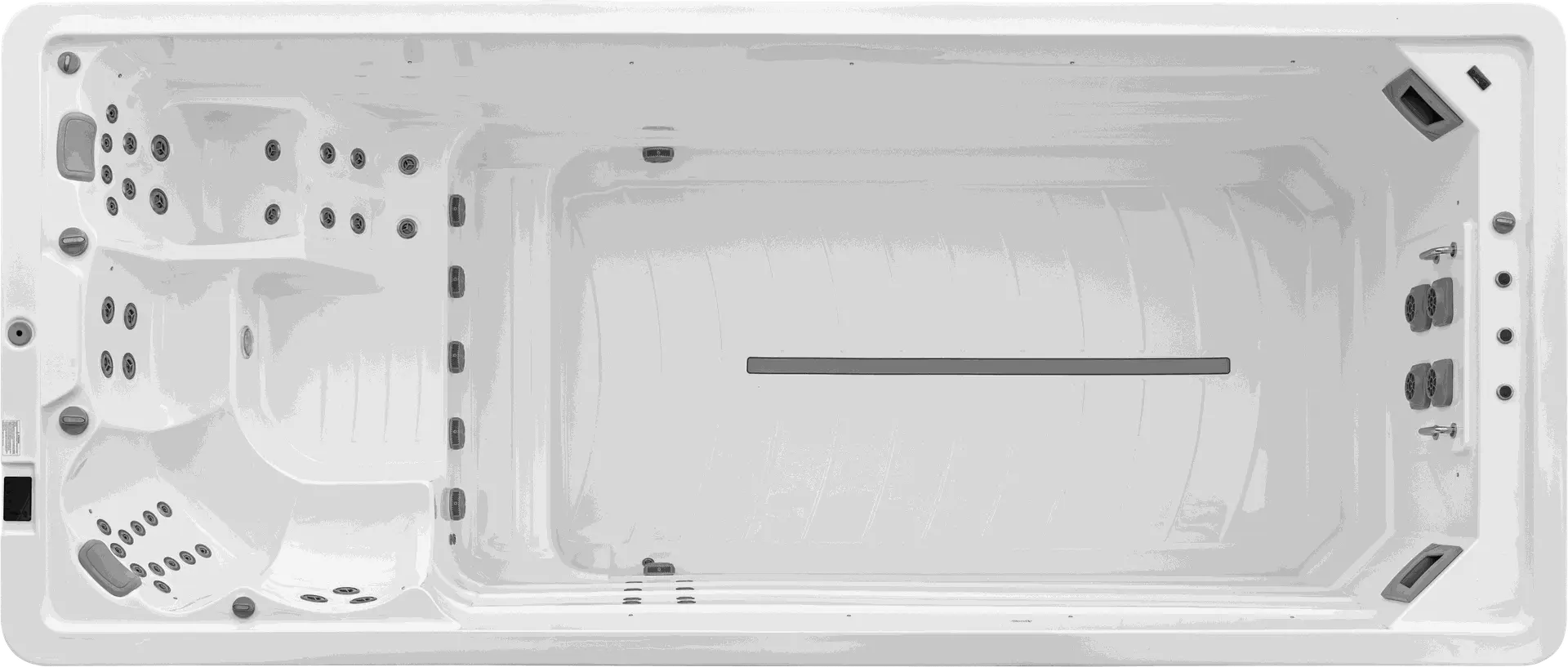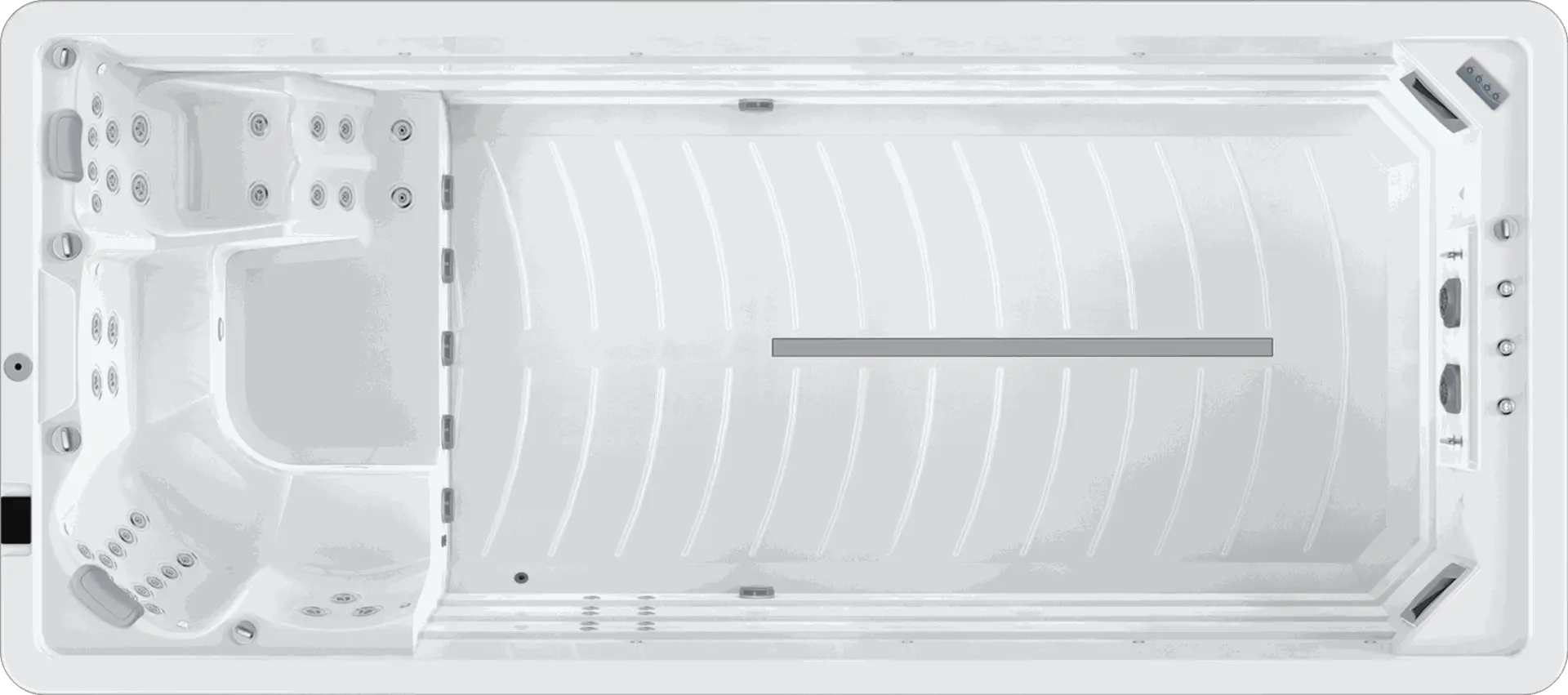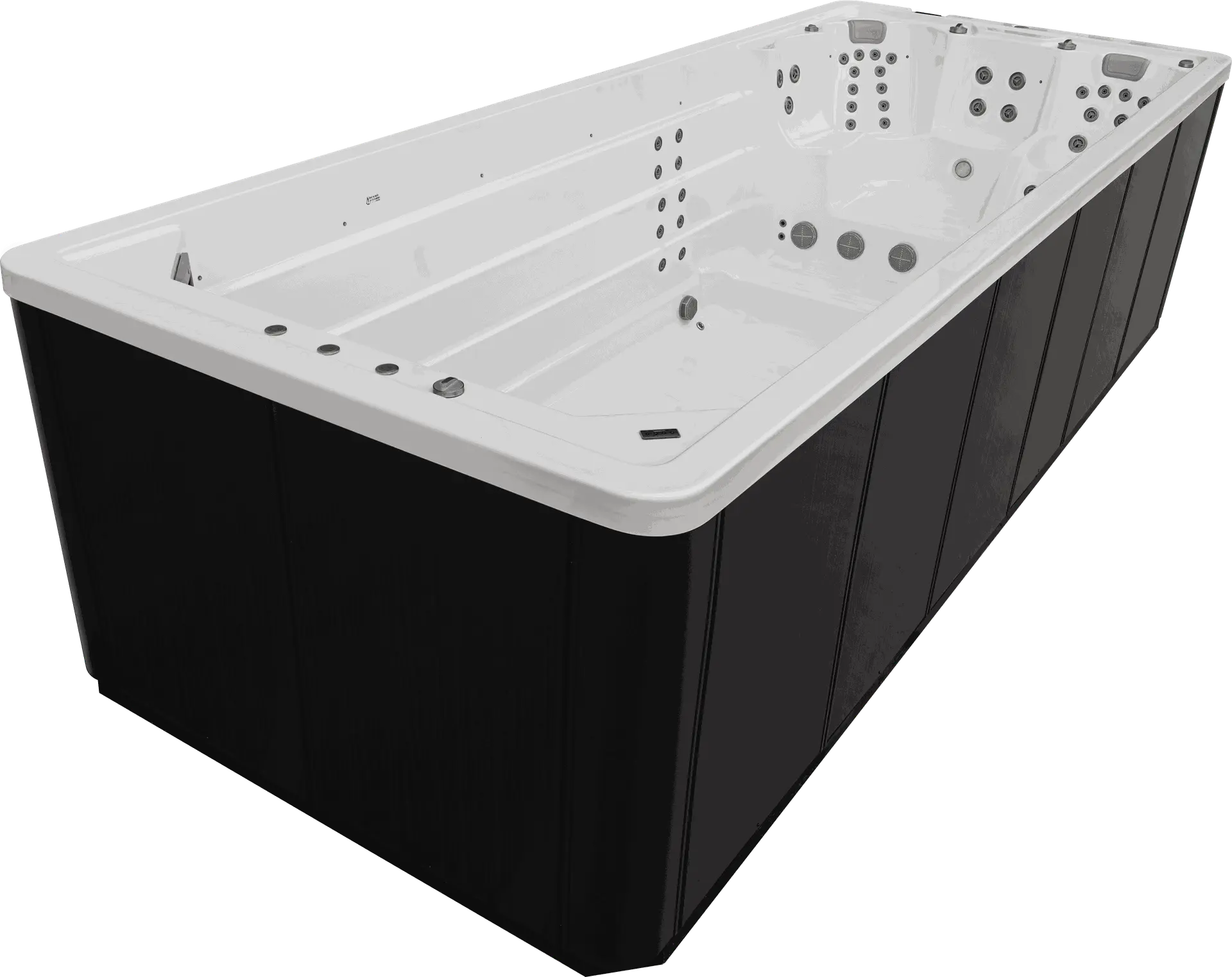 Getrennt und doch vereint, die Lösung wenn man beides möchte. Im Whirlpool Relaxen auf 3 Massagesitzen und einer Massageliege und im Swimmingpool sportlich aktiv schwimmen mit einer Gegenstromanlage. Mit einer Gesamtlänge von fast 8m und einer Gesamttiefe von 1,5m unser größter Swimspa der keinen Wunsch unerfüllt lässt.