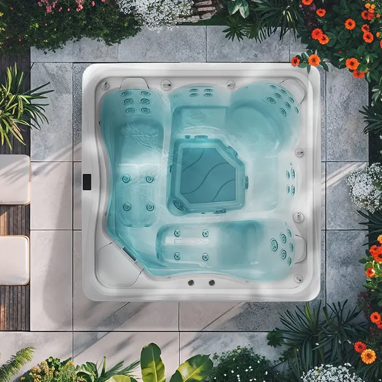 Gerundetes Design mit 2 Massageliegen und 3 Massagesitze, für 5 Personen